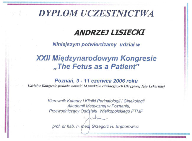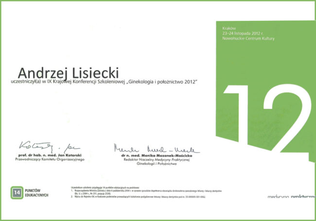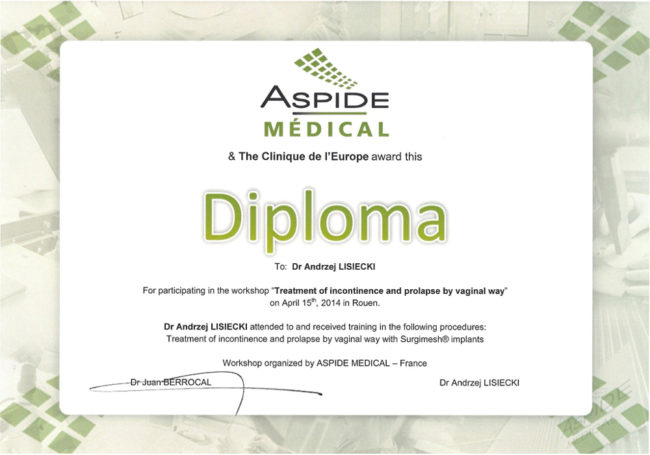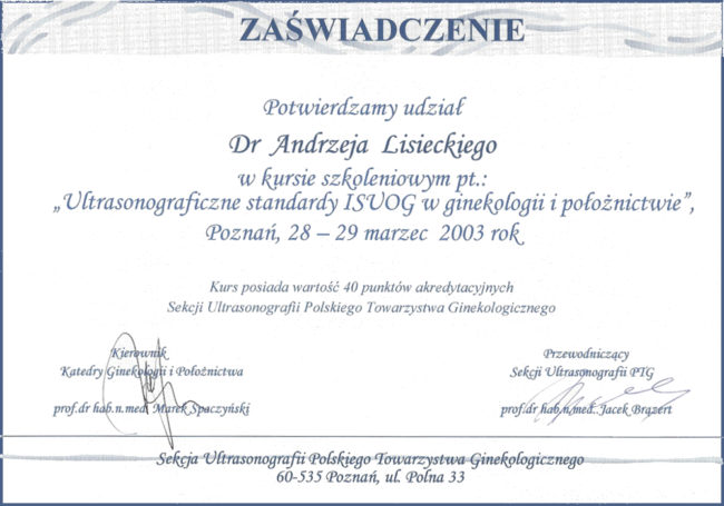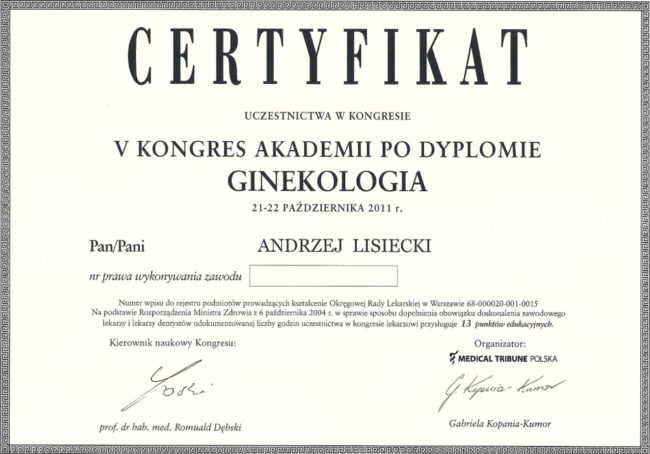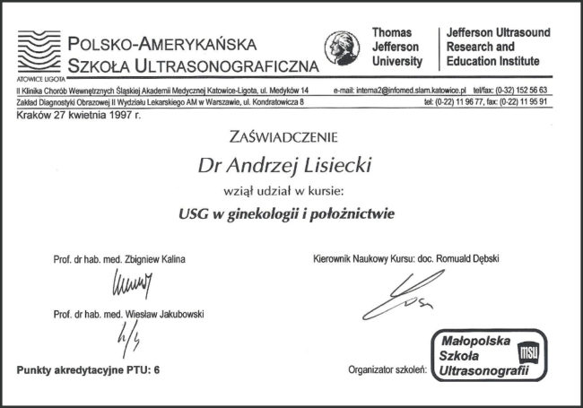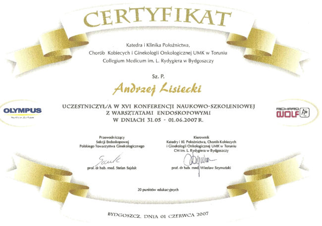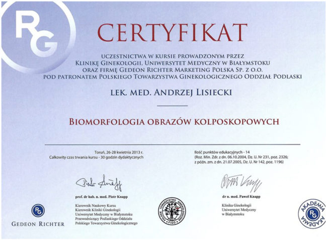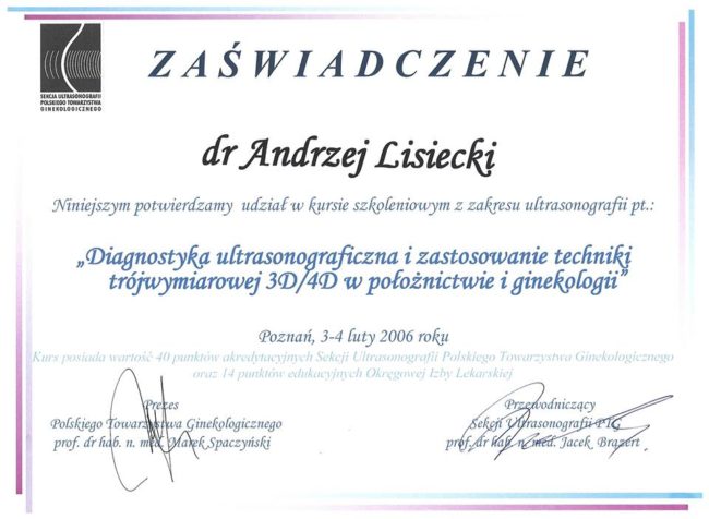 lek. med. Andrzej Lisiecki – certyfikaty