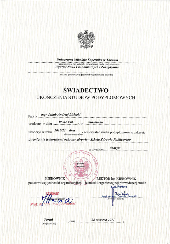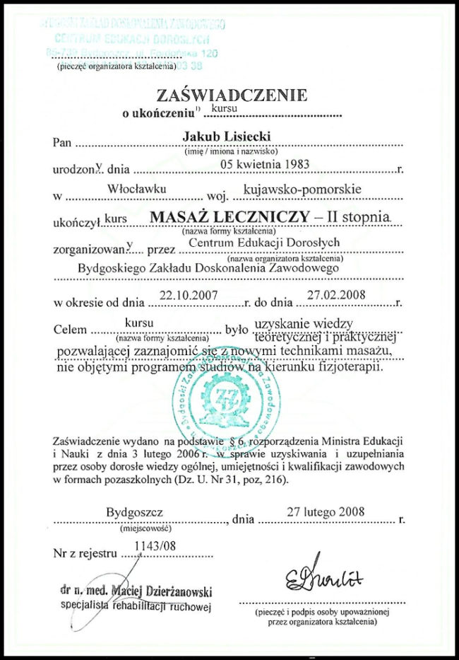 lek. med. Mariusz Strupiechowski – certyfikaty