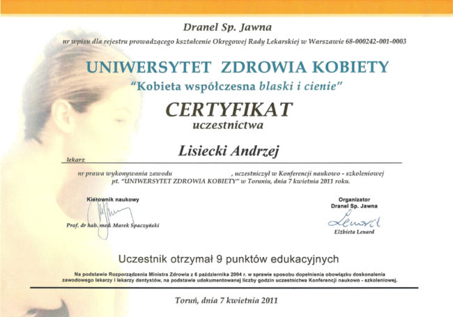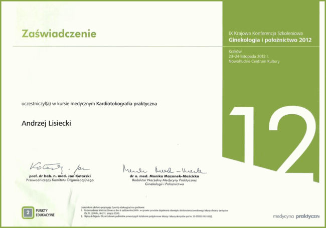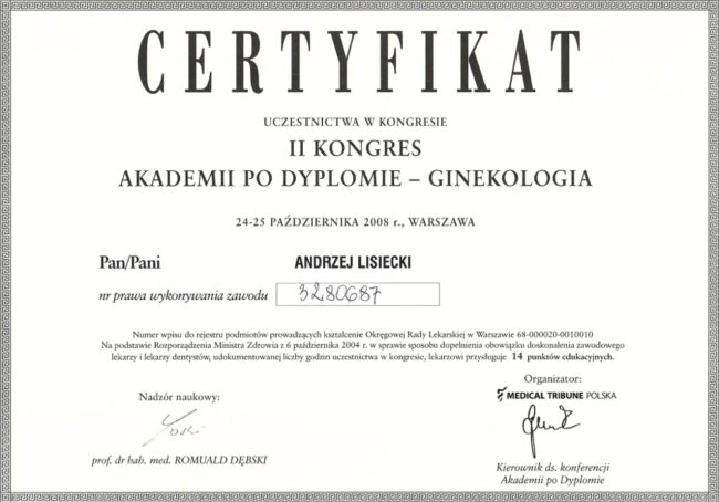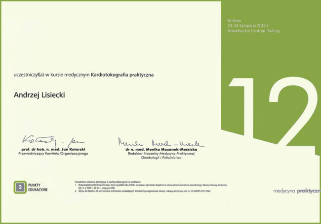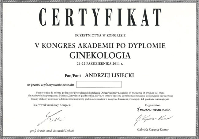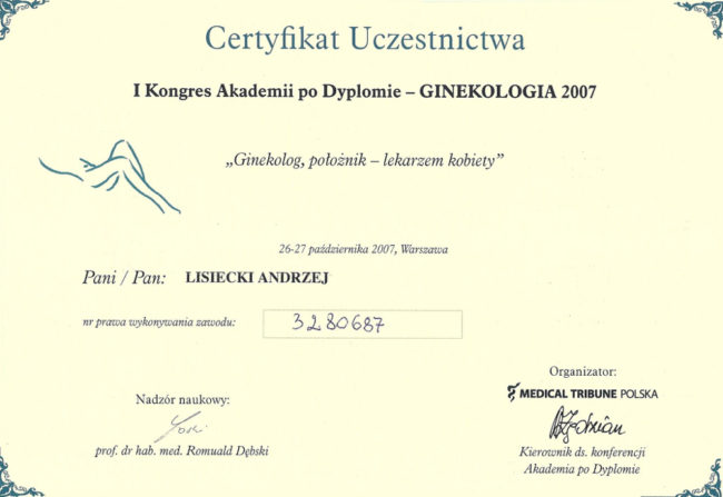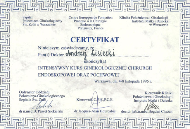 • lek. med. Andrzej Lisiecki – certyfikaty